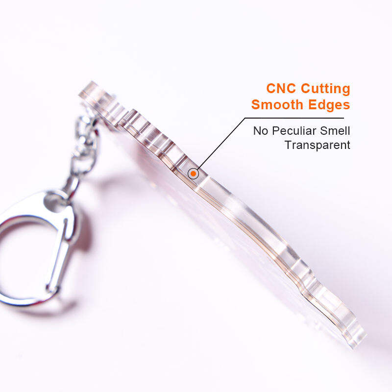 Durable transparent acrylic keychains with double-sided printing. Perfect for promotions, fan merchandise, and collectible gifts!