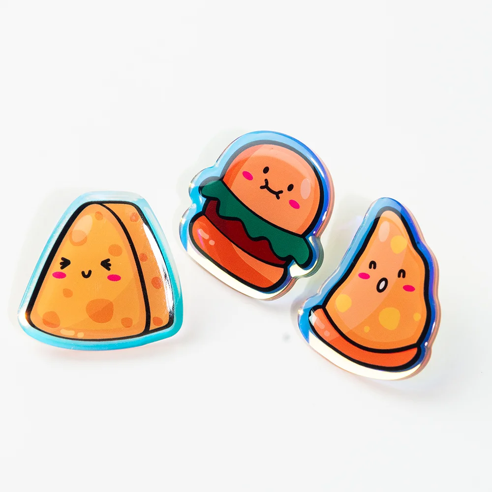 Pinos de Acrílico com Impressão Personalizada de Logotipo e Desenho Animado, Crachá Fofo em Plástico Arco-Íris com Fechamento de Borracha