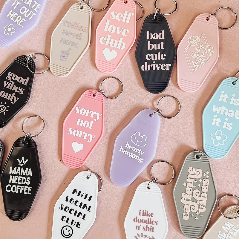 Wholesale Custom High Quality Acrylic Plastic Key Chain Make Your Design Logo Motel Hotel Keychain Blank with Promotion Gift factory
